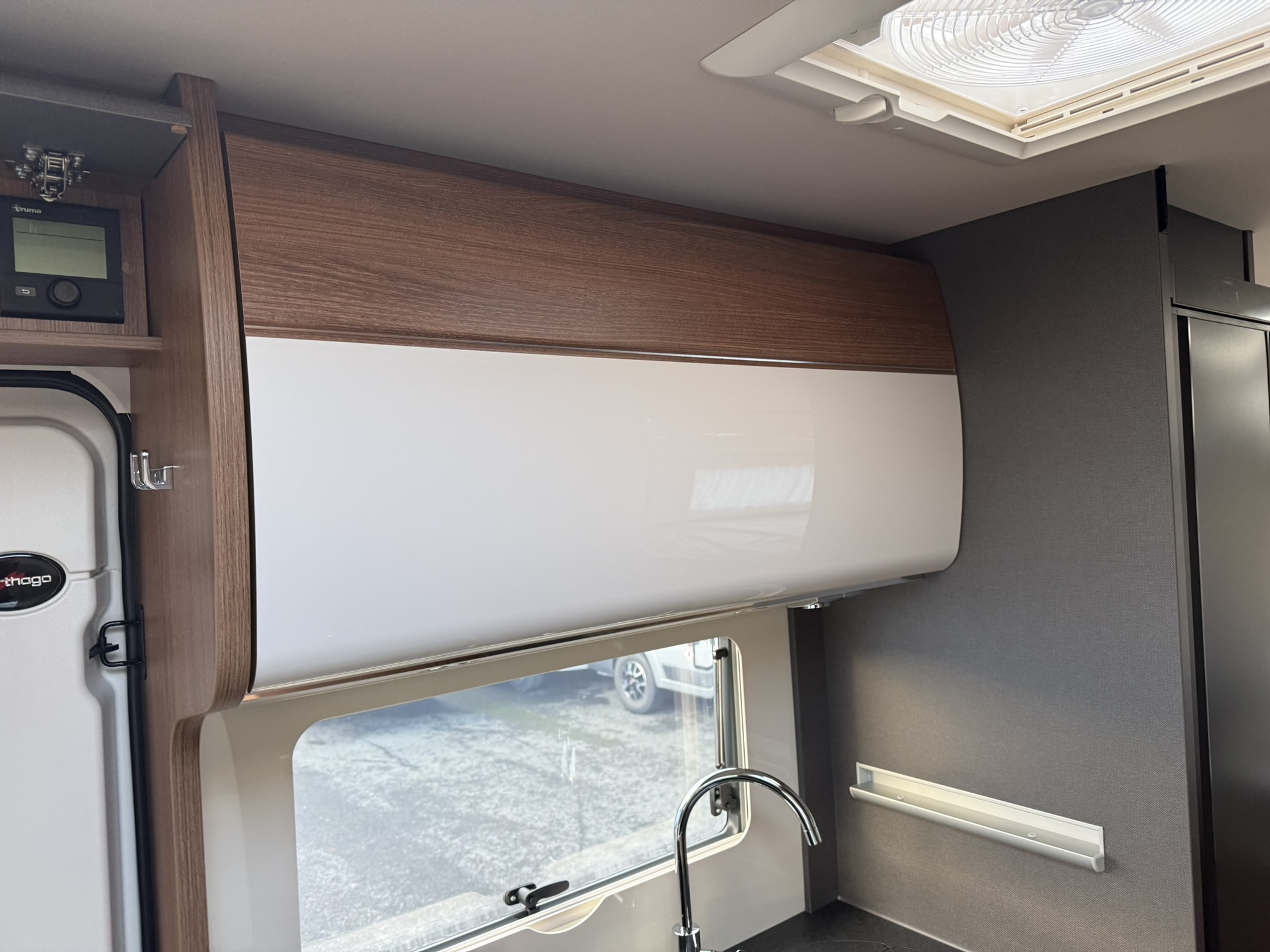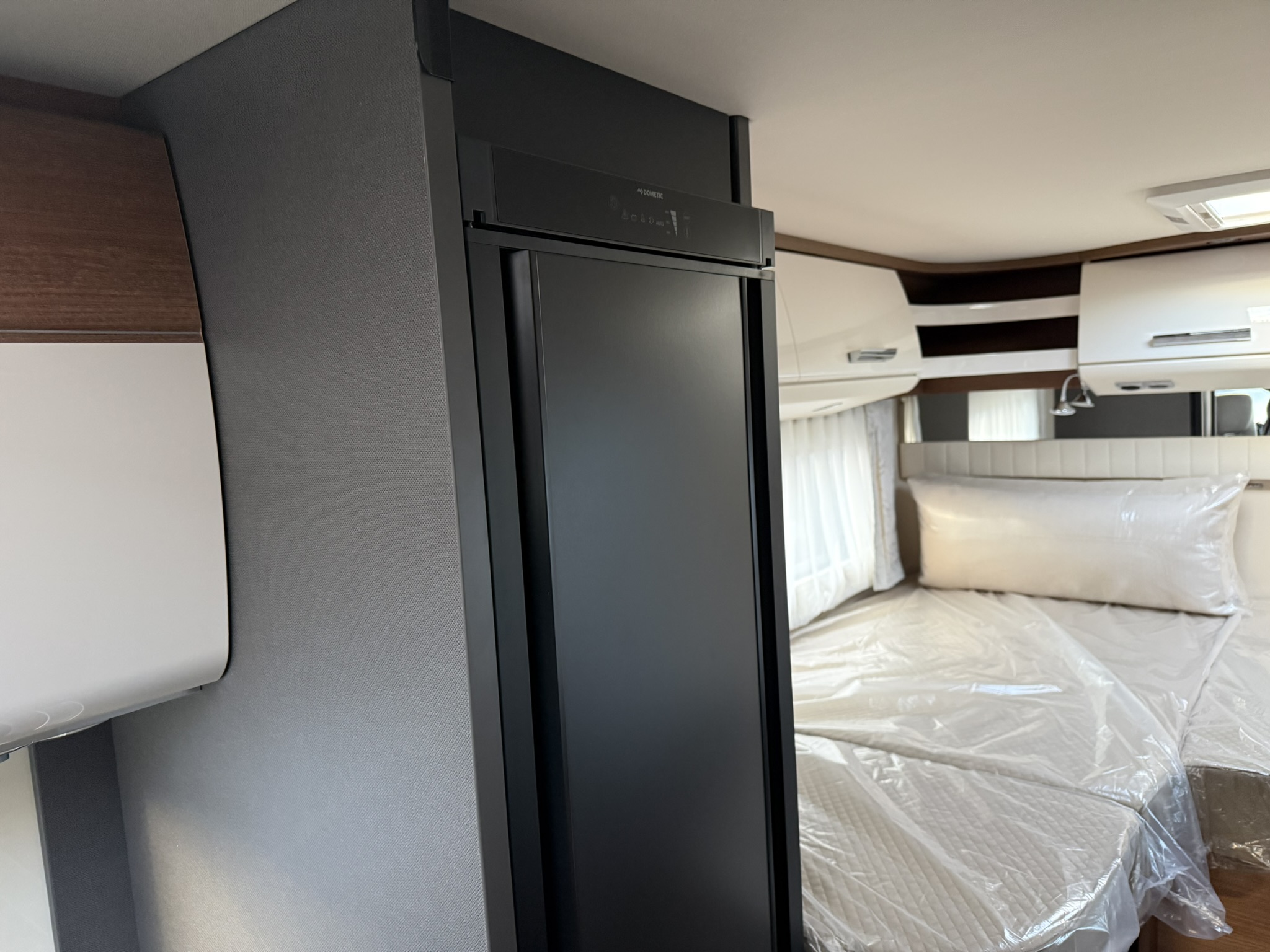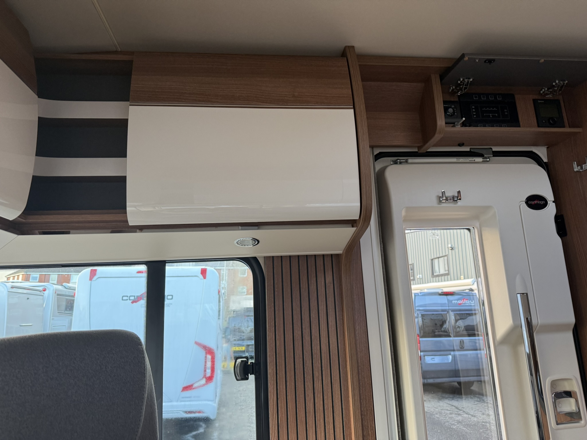 Drop-down bed omitted, replaced with all-round overhead storage