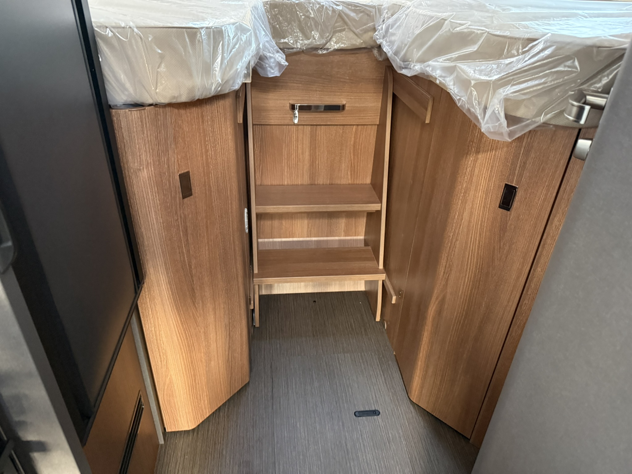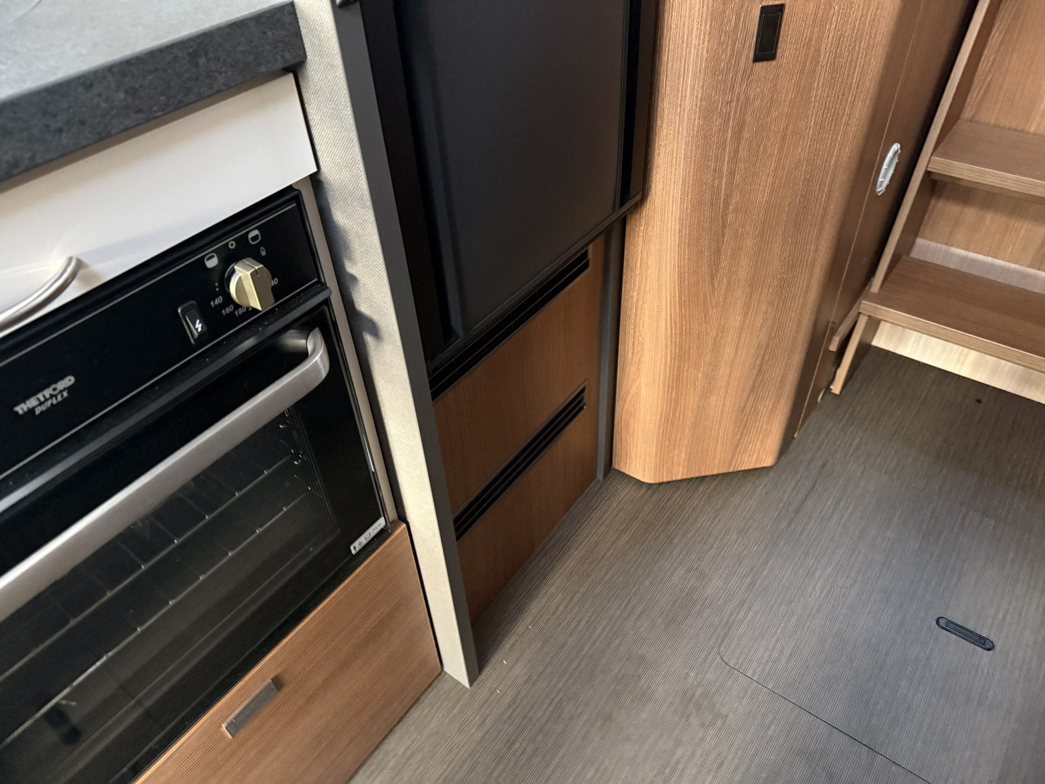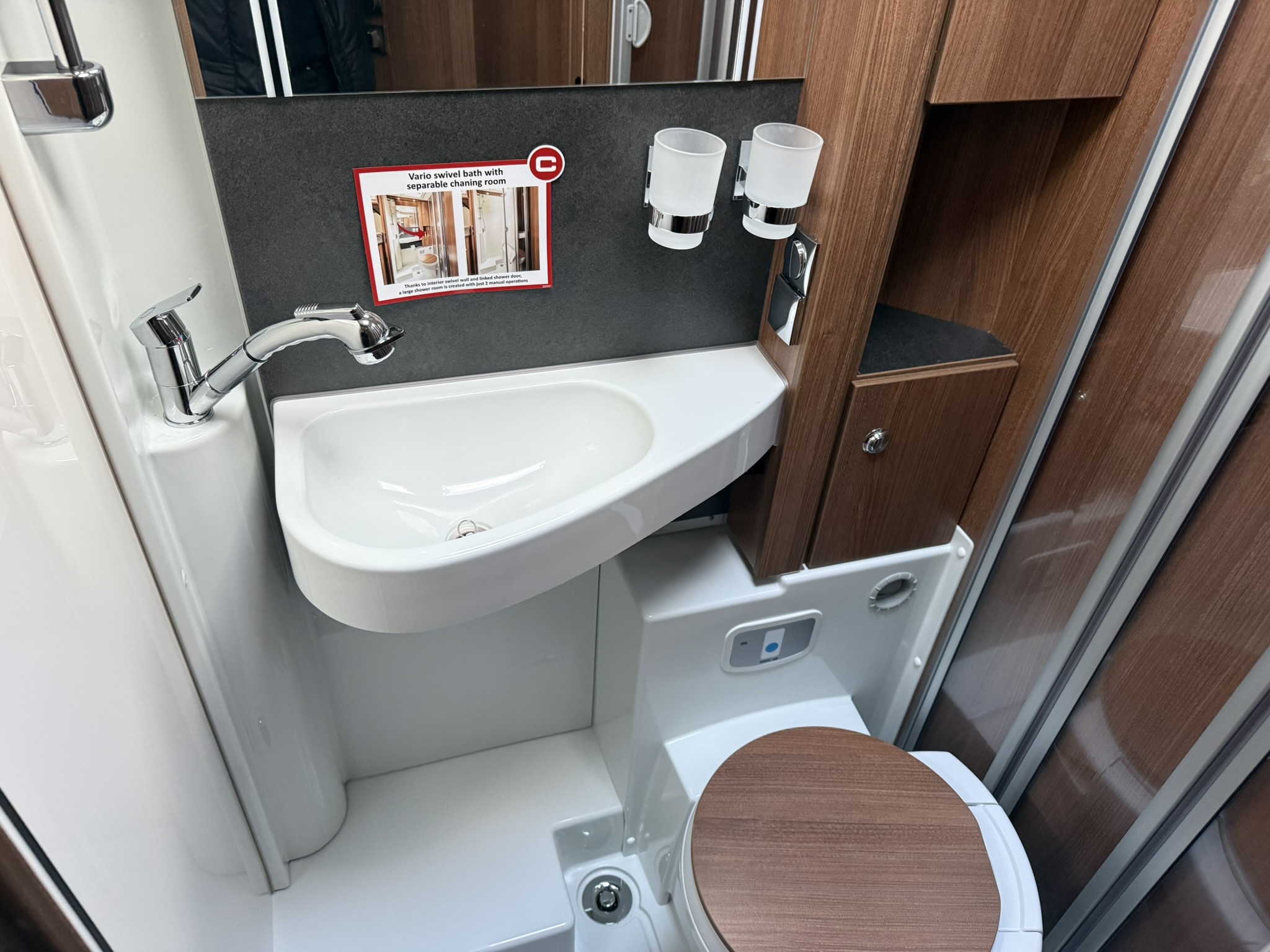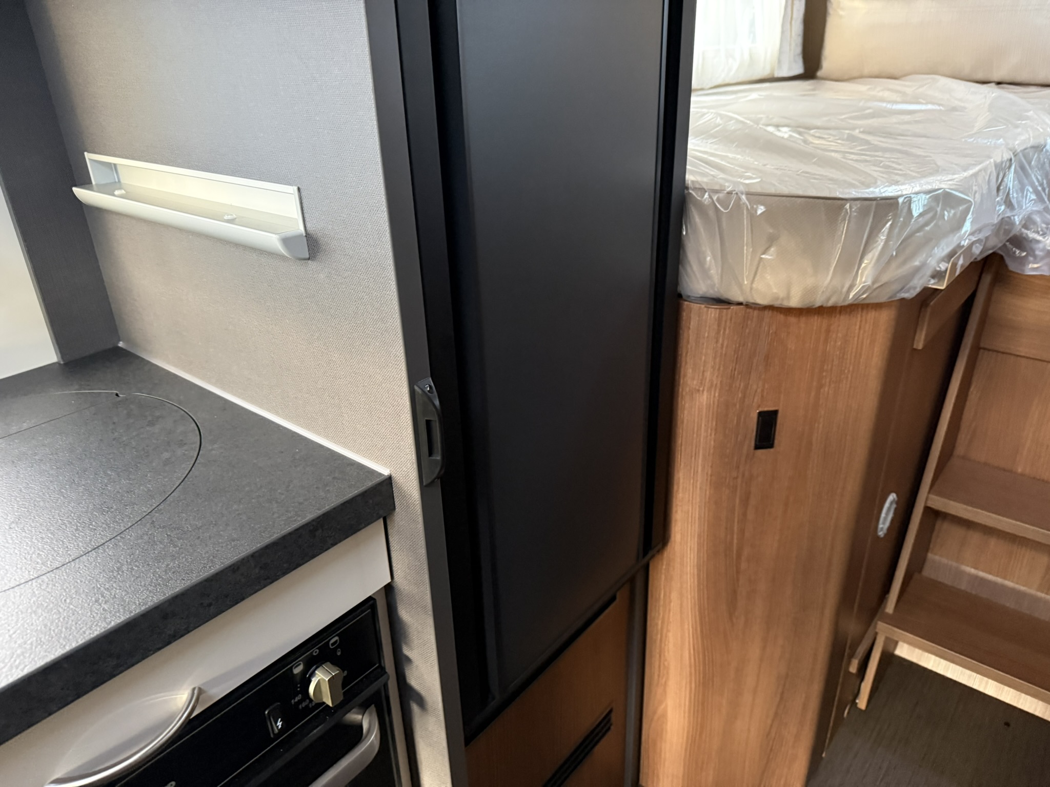 Drop-down bed omitted, replaced with all-round overhead storage